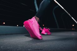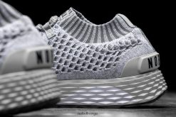 - Overdelen av den strikkede løpeskoen har en sømløs, pustende og stretchstrikket sokkekonstruksjon.